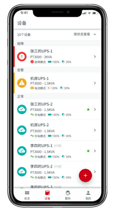 云智能電源管理App,集設備管理、數據監控、服務支持等功能。App 提供安全的通訊機制,使用非對稱加密機制確保數據傳輸及遠程訪問安全可靠。通過數字化技術幫助客戶不受地域和時間限制,便利地查看及管理接入山特云平臺的UPS,即時獲得事件及故障報警提醒。App為客戶關鍵業務持續運轉,時刻在線保駕護航。